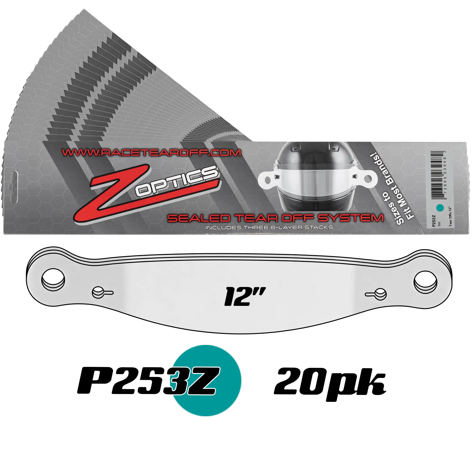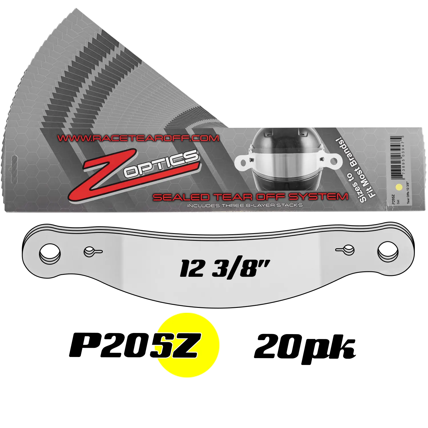 P205Z20 - 20 packs of Race Tear Offs 12 3/8 - 3 Sets of 8 Stack per pack |