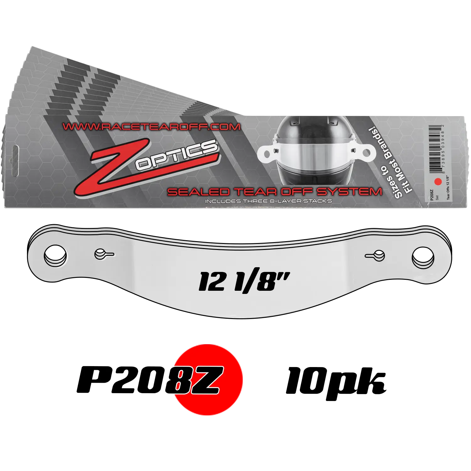 P208Z10 - 10 packs of Race Tear Offs 12 1/8 - 3 Sets of 8 Stack per pack |